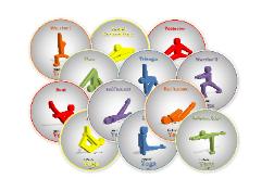 station routines. Place spots on the floor and have participants perform the yoga positions featured on the spot. Students will have a